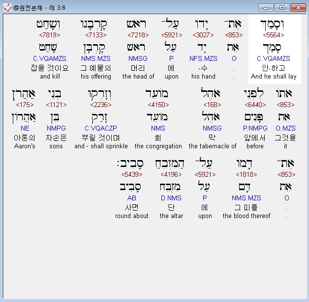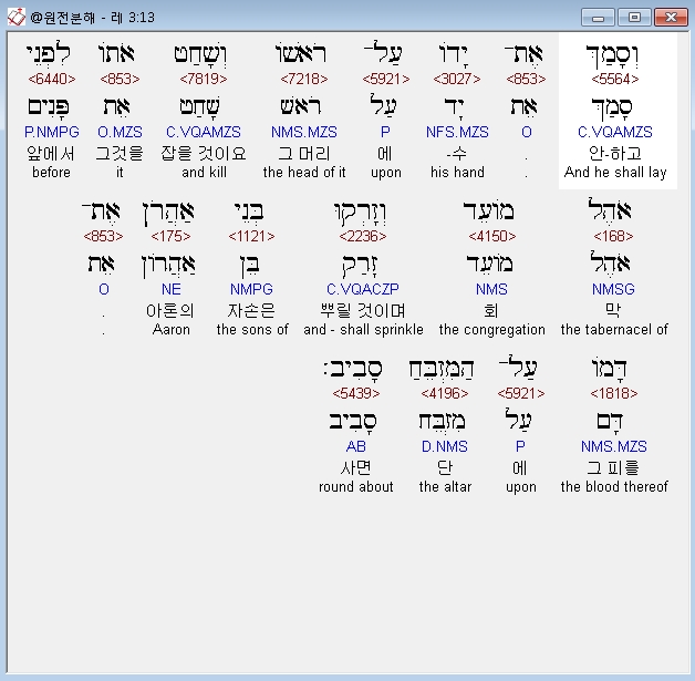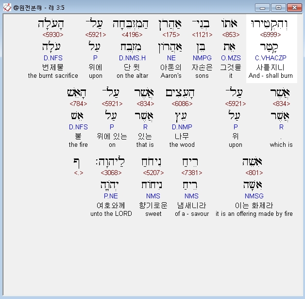 | 히브리어 레위기 5장 전체 원어 원문 성경 공부 주석 강해 설교 해설 해석 (0) | 2020.09.27 |