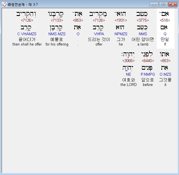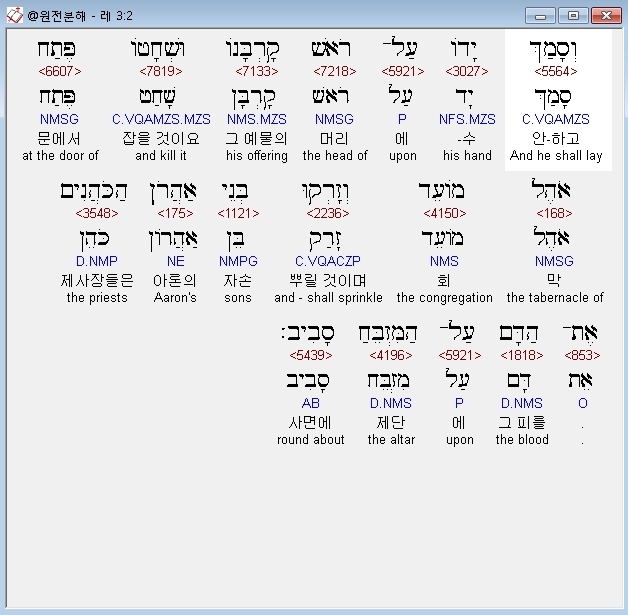 | 히브리어 레위기 2장 전체 원어 원문 성경 공부 주석 강해 설교 해설 해석 (0) | 2020.09.27 |