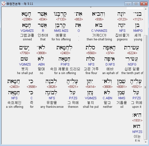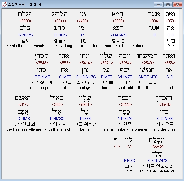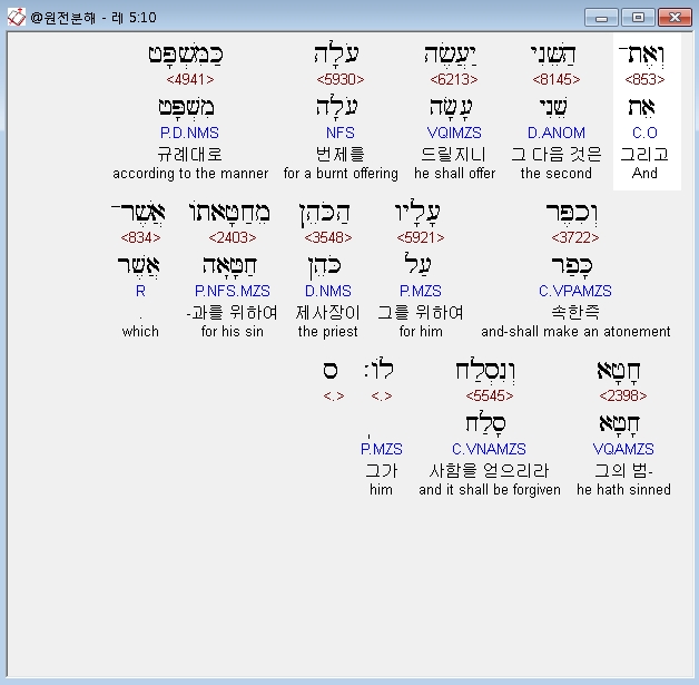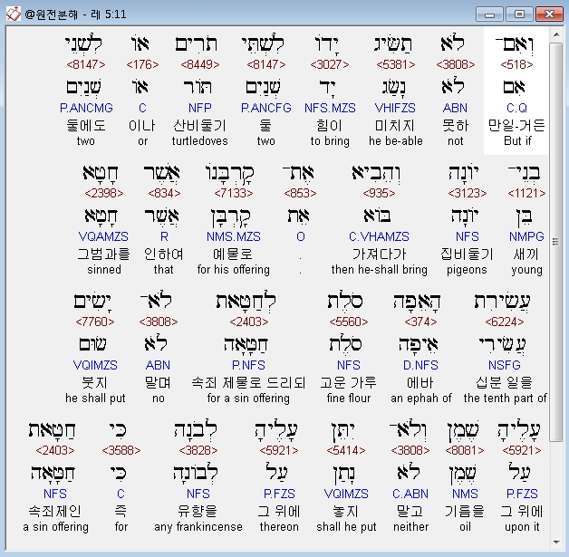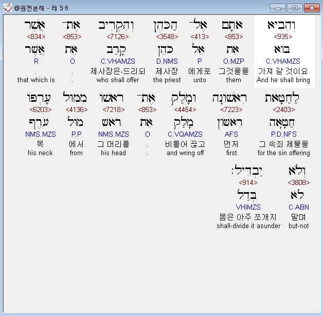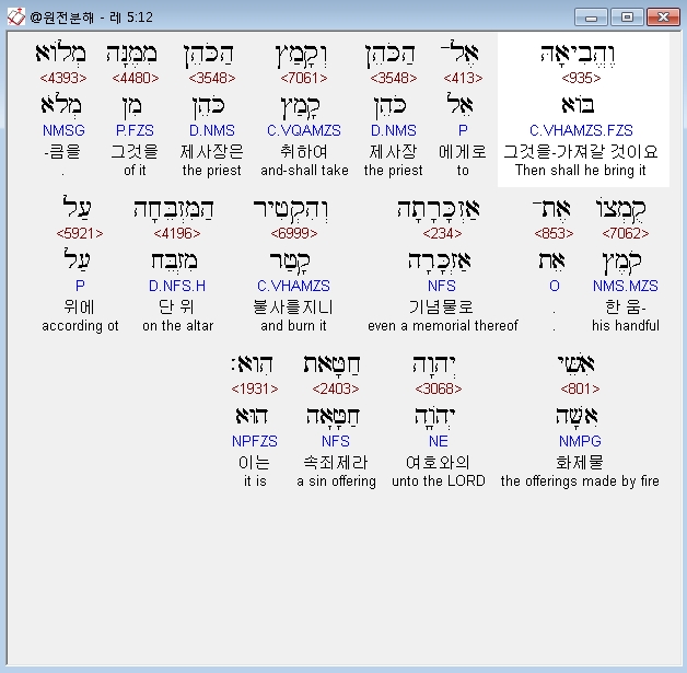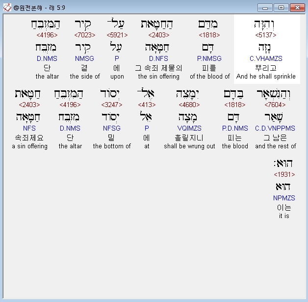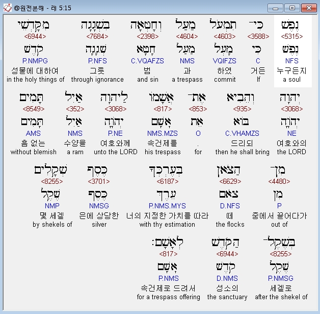 | 히브리어 레위기 6장 전체 원어 원문 성경 공부 주석 강해 설교 해설 해석 (0) | 2020.09.27 |