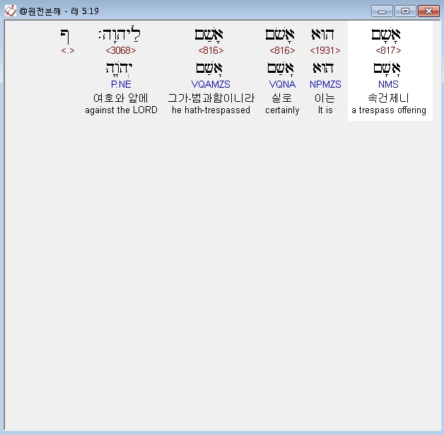 히브리어구약BHS,19 אָשָׁם הוּא אָשֹׁם אָשַׁם לַיהוָה׃ ף
