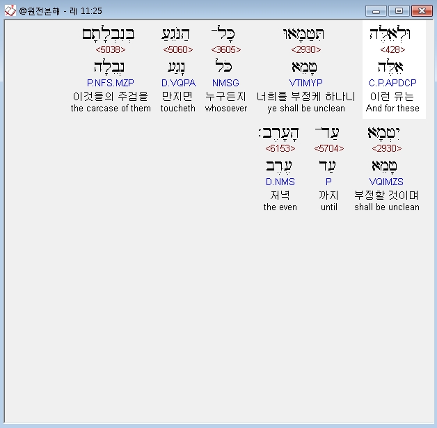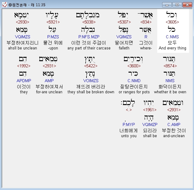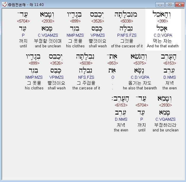 | 히브리어 레위기 12장 전체 원어 원문 성경 공부 주석 강해 설교 해설 해석 (0) | 2020.09.27 |