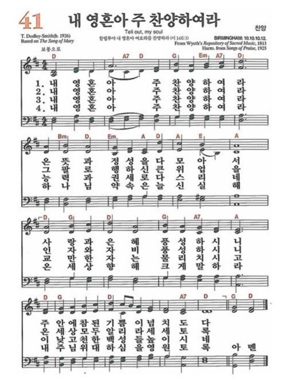 새찬송가 41장 내 영혼아 주 찬양하여라-악보 PPT(배경X)