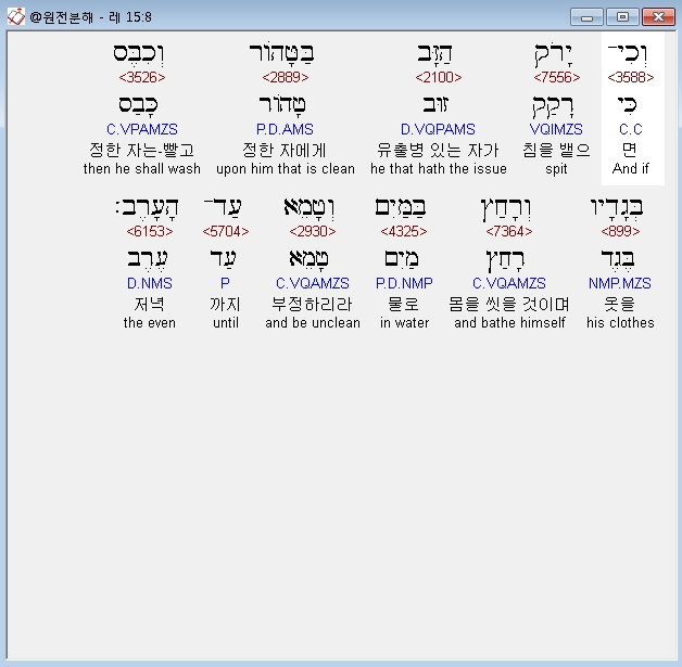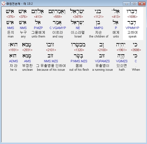 헬라어구약Septuagint,2 λαλησον τοις υιοις ισραηλ και ερεις αυτοις ανδρι ανδρι ω εαν γενηται ρυσις εκ του σωματος αυτου η ρυσις αυτου ακαθαρτος εστιν