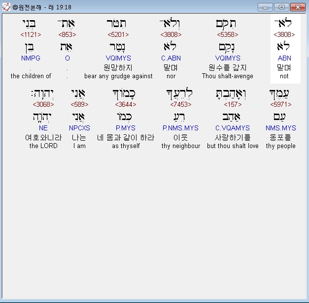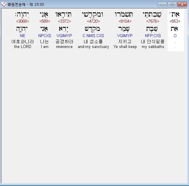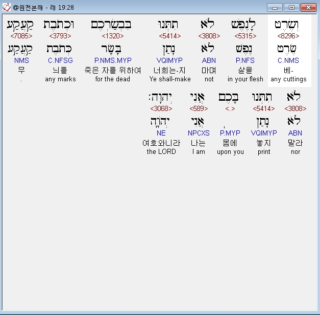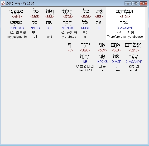 | 히브리어 레위기 18장 전체 원어 원문 성경 공부 주석 강해 설교 해설 해석 (0) | 2020.09.27 |