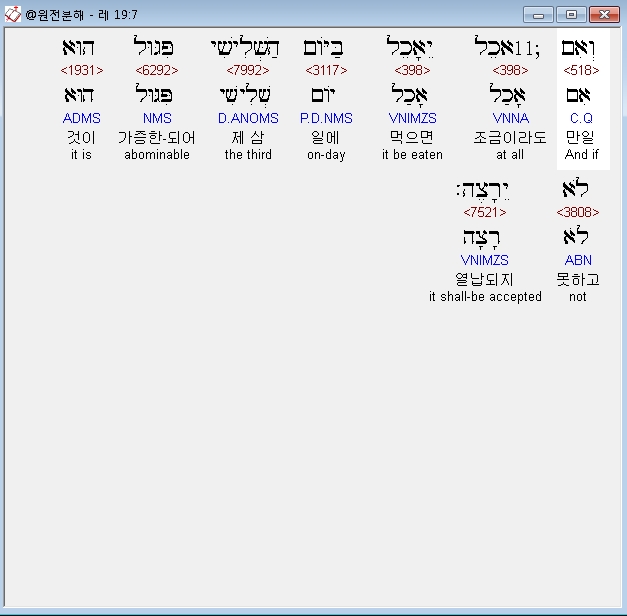 영어NASB,7 'So if it is eaten at all on the third day, it is an offense; it will not be accepted.