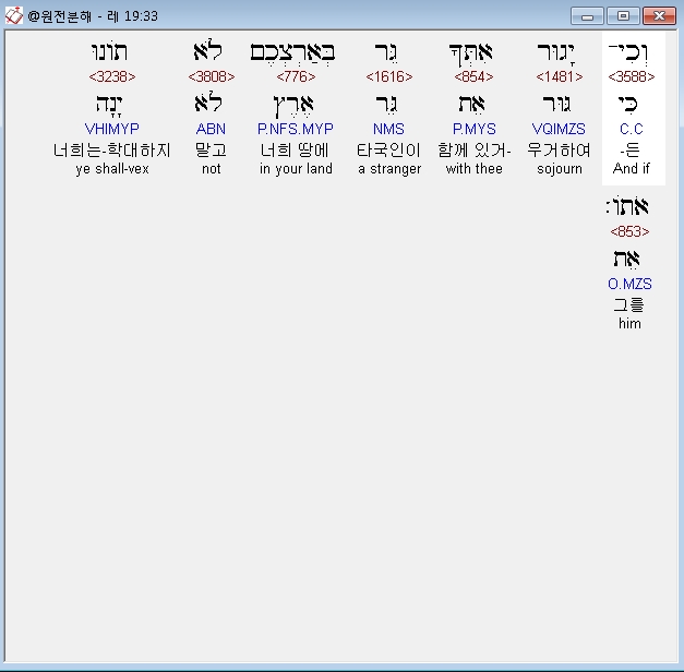 히브리어구약BHS,33 וְכִי־יָגוּר אִתְּךָ גֵּר בְּאַרְצְכֶם לֹא תֹונוּ אֹתֹו׃
