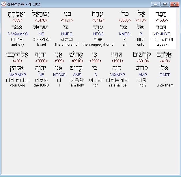 영어NRSV,2 Speak to all the congregation of the people of Israel and say to them: You shall be holy, for I the LORD your God am holy.