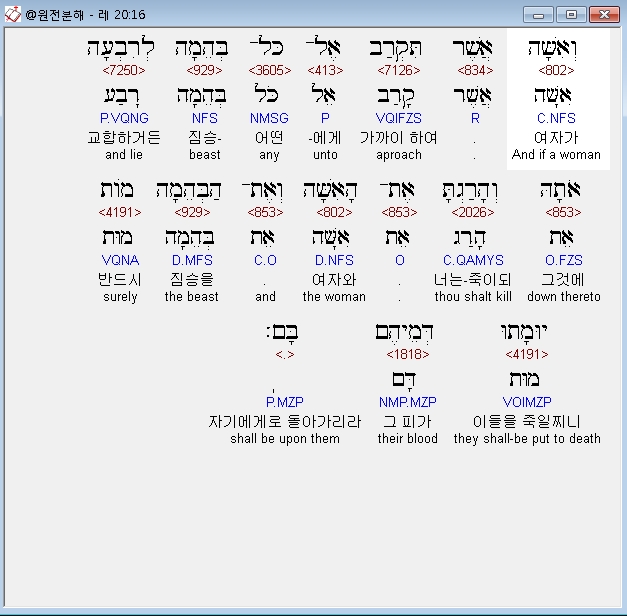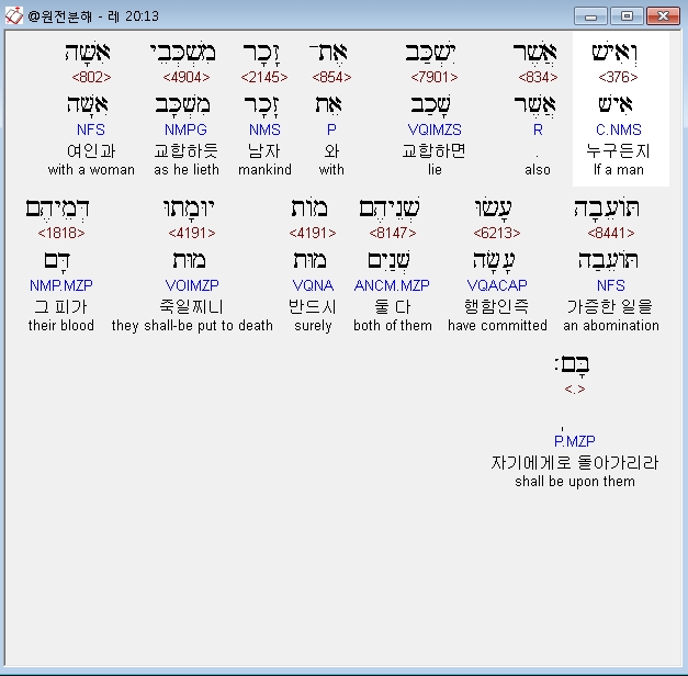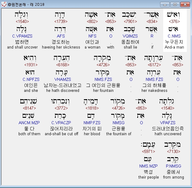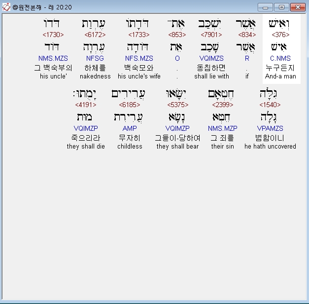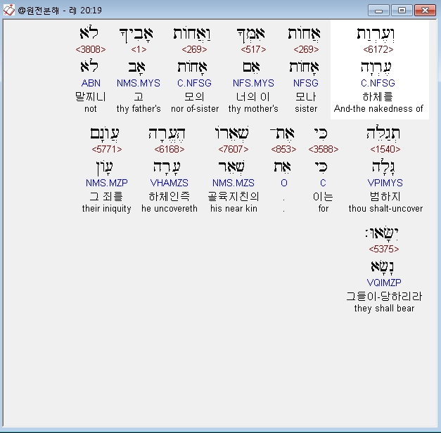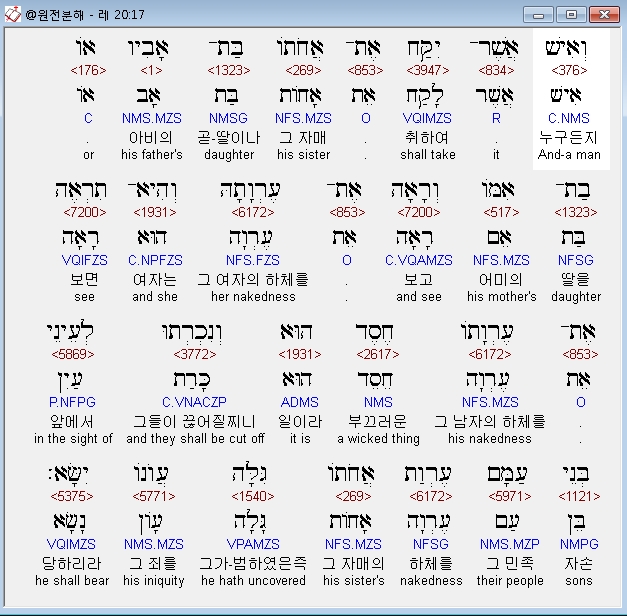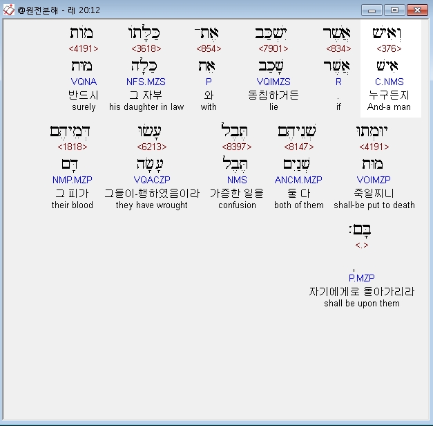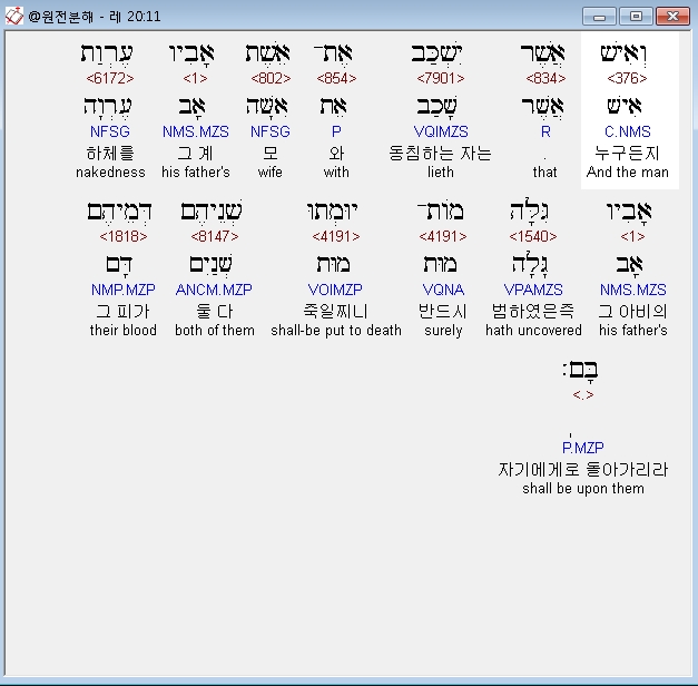 | 히브리어 레위기 18장 전체 원어 원문 성경 공부 주석 강해 설교 해설 해석 (0) | 2020.09.27 |