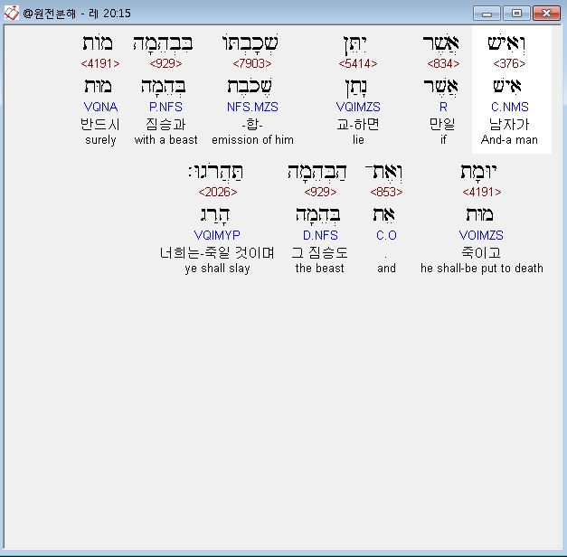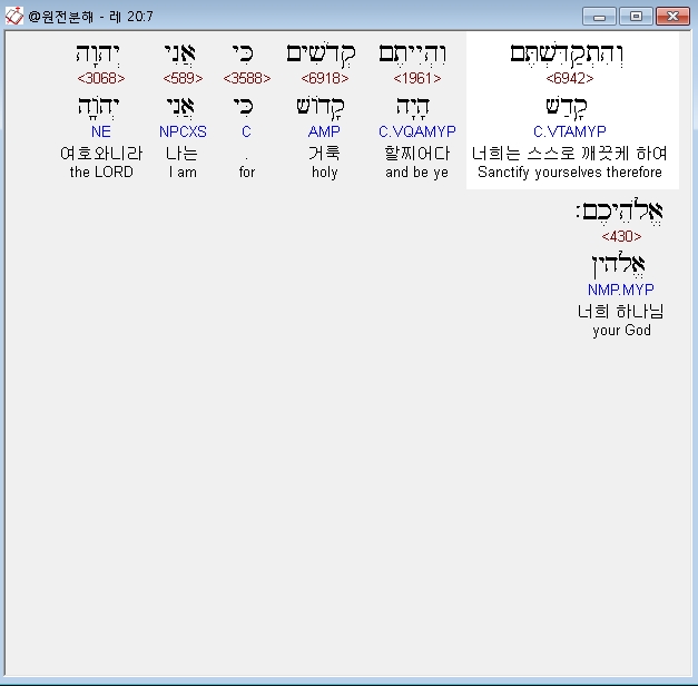| 히브리어 레위기 19장 전체 원어 원문 성경 공부 주석 강해 설교 해설 해석 (0) | 2020.09.27 |