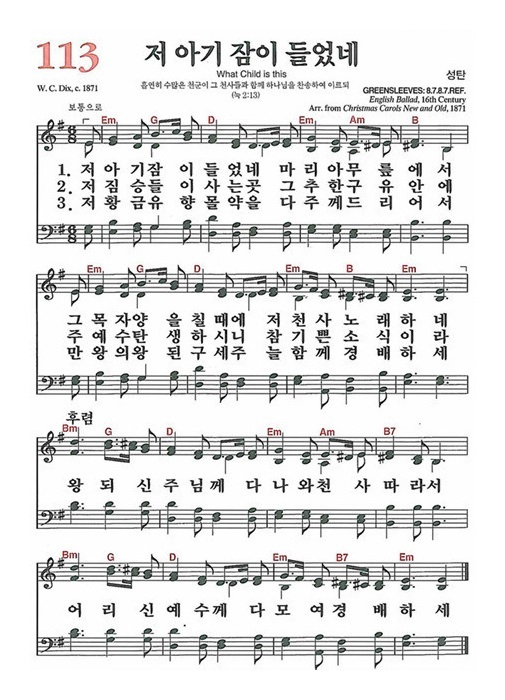 | 새찬송가 114장(통일 114장) 그 어린 주 예수 - 악보 및 해설 (0) | 2021.11.27 |