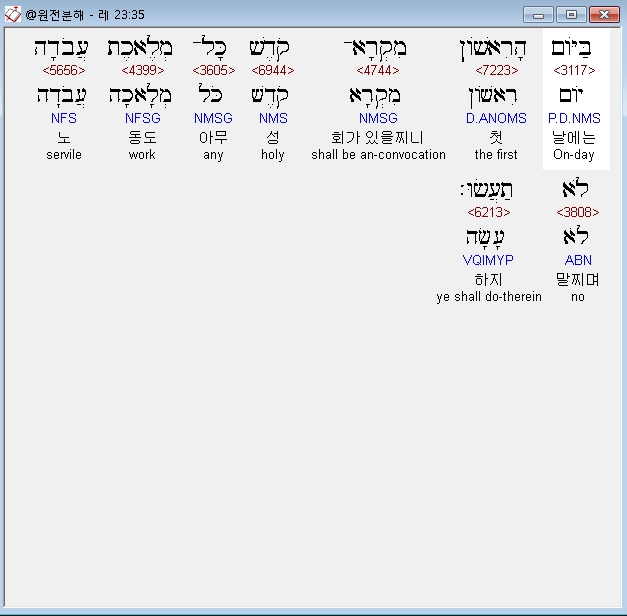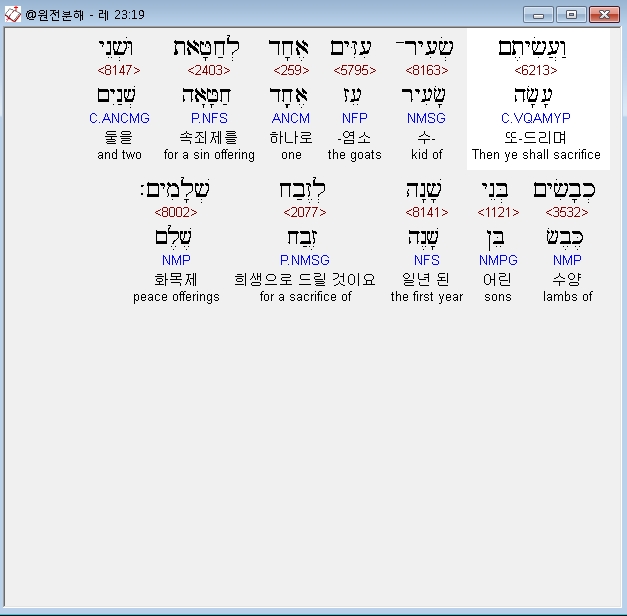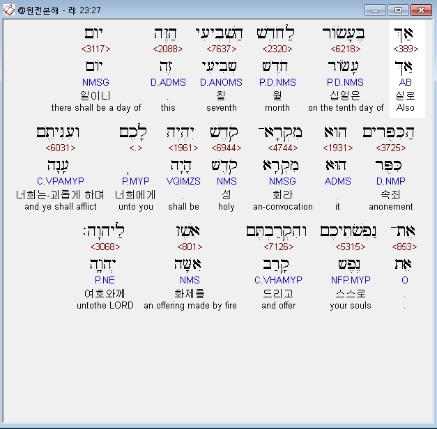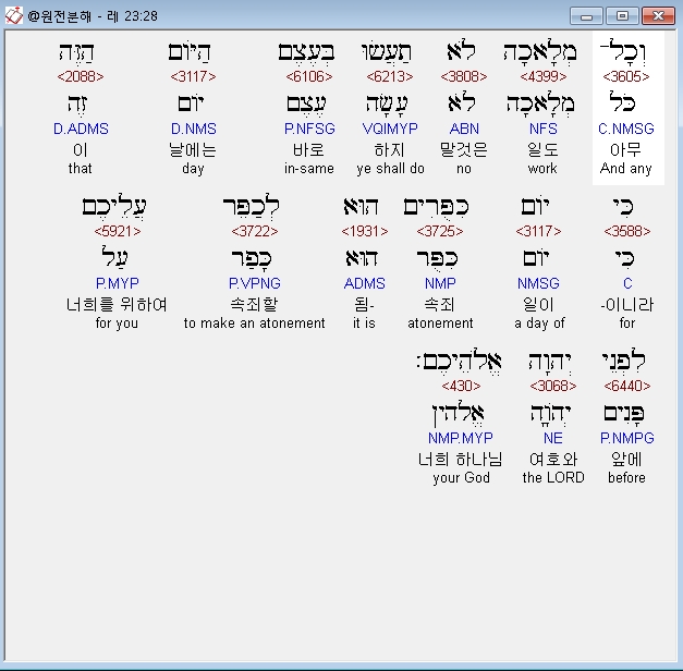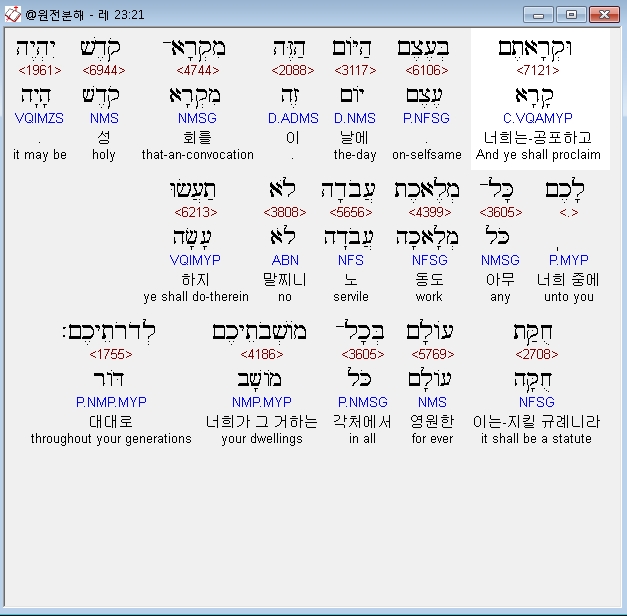 | 히브리어 레위기 25장 전체 원어 원문 성경 공부 주석 강해 설교 해설 해석 (0) | 2020.09.27 |