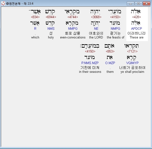 히브리어구약BHS,4 אֵלֶּה מֹועֲדֵי יְהוָה מִקְרָאֵי קֹדֶשׁ אֲשֶׁר־תִּקְרְאוּ אֹתָם בְּמֹועֲדָם׃