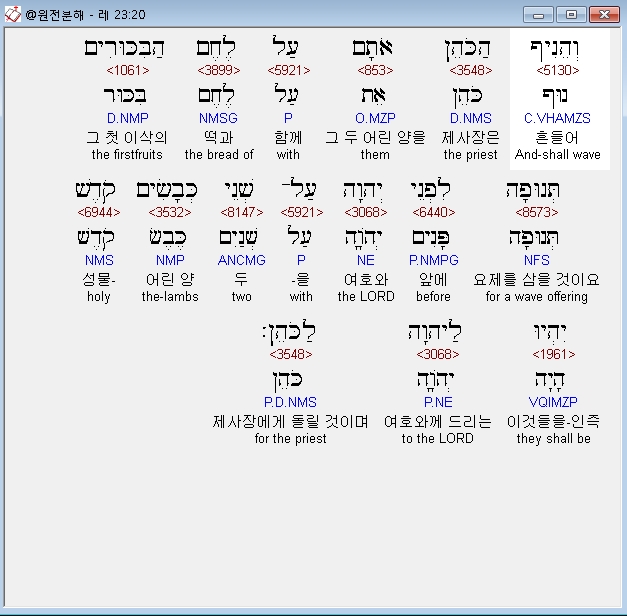 | 히브리어 레위기 24장 전체 원어 원문 성경 공부 주석 강해 설교 해설 해석 (0) | 2020.09.27 |