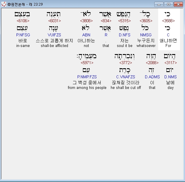 | 히브리어 레위기 22장 전체 원어 원문 성경 공부 주석 강해 설교 해설 해석 (0) | 2020.09.27 |