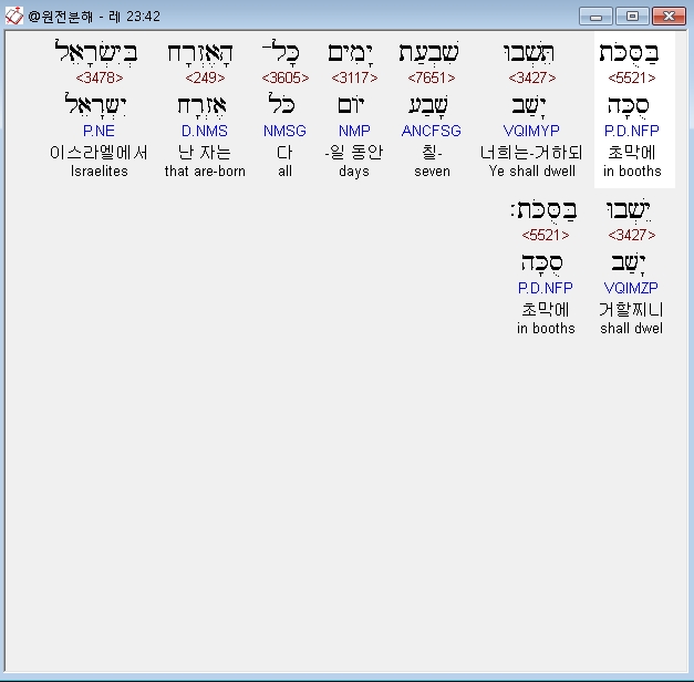 히브리어구약BHS,42 בַּסֻּכֹּת תֵּשְׁבוּ שִׁבְעַת יָמִים כָּל־הָאֶזְרָח בְּיִשְׂרָאֵל יֵשְׁבוּ בַּסֻּכֹּת׃