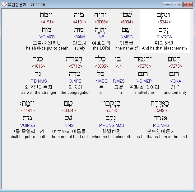 | 히브리어 레위기 25장 전체 원어 원문 성경 공부 주석 강해 설교 해설 해석 (0) | 2020.09.27 |