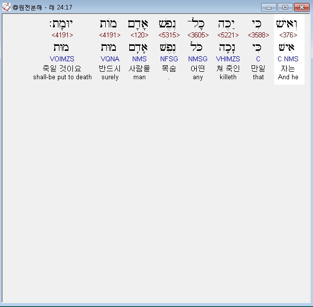 히브리어구약BHS,17 וְאִישׁ כִּי יַכֶּה כָּל־נֶפֶשׁ אָדָם מֹות יוּמָת׃