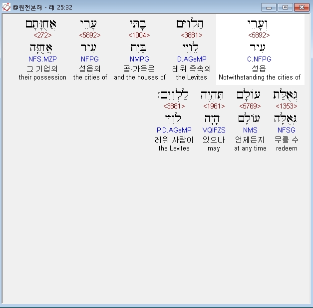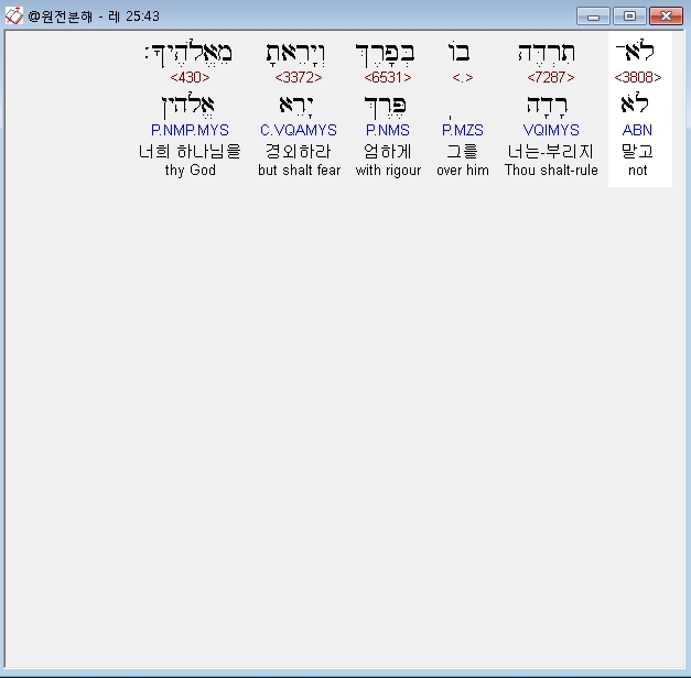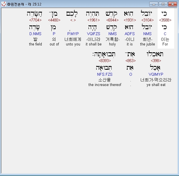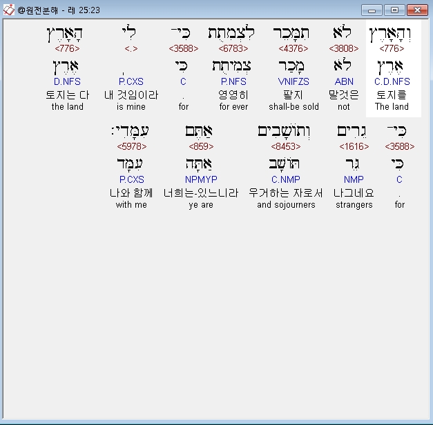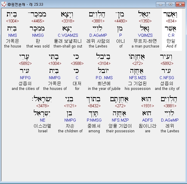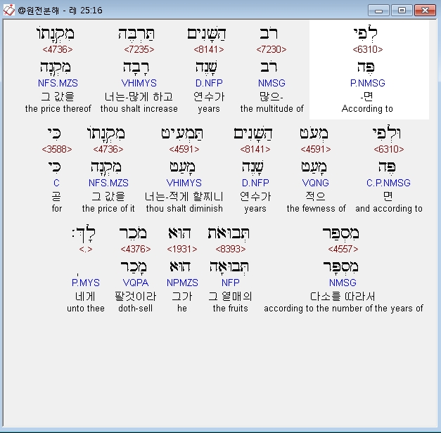 | 히브리어 레위기 26장 전체 원어 원문 성경 공부 주석 강해 설교 해설 해석 (0) | 2020.09.27 |