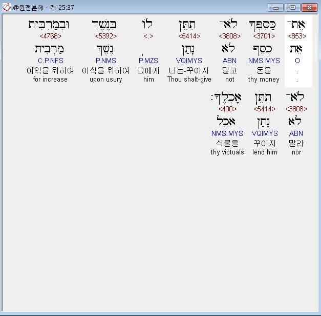 | 히브리어 레위기 24장 전체 원어 원문 성경 공부 주석 강해 설교 해설 해석 (0) | 2020.09.27 |