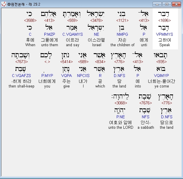 히브리어구약BHS,2 דַּבֵּר אֶל־בְּנֵי יִשְׂרָאֵל וְאָמַרְתָּ אֲלֵהֶם כִּי תָבֹאוּ אֶל־הָאָרֶץ אֲשֶׁר אֲנִי נֹתֵן לָכֶם וְשָׁבְתָה הָאָרֶץ שַׁבָּת לַיהוָה׃