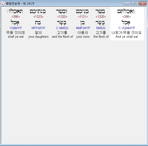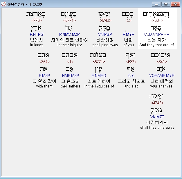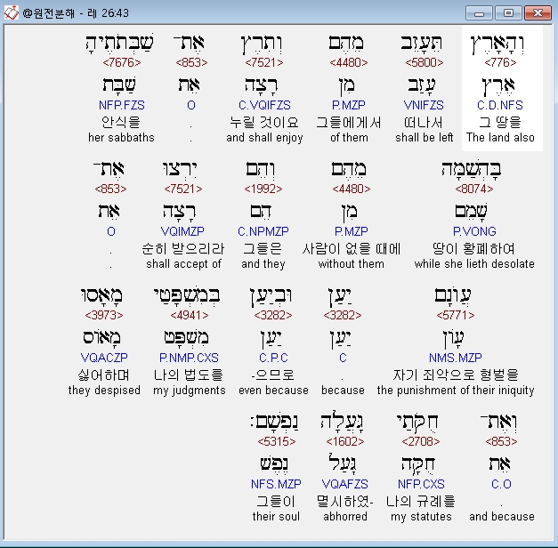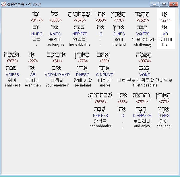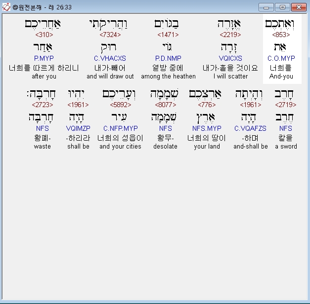 | 히브리어 레위기 25장 전체 원어 원문 성경 공부 주석 강해 설교 해설 해석 (0) | 2020.09.27 |