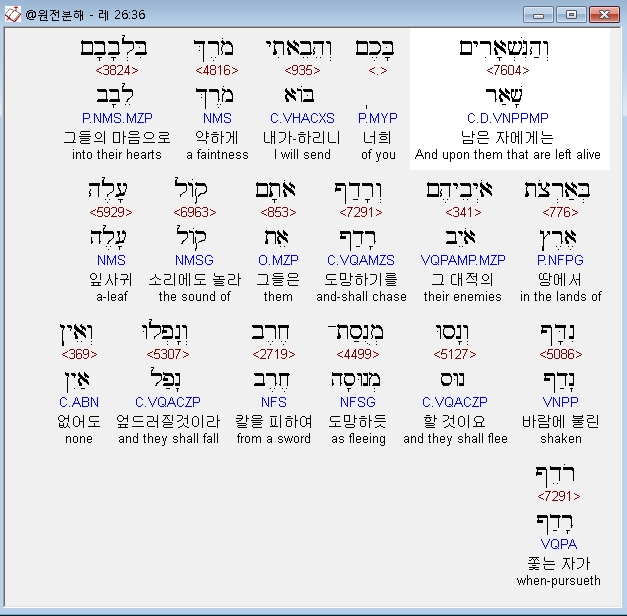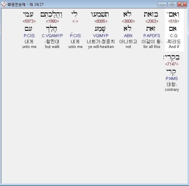 | 히브리어 레위기 27장 전체 원어 원문 성경 공부 주석 강해 설교 해설 해석 (0) | 2020.09.27 |