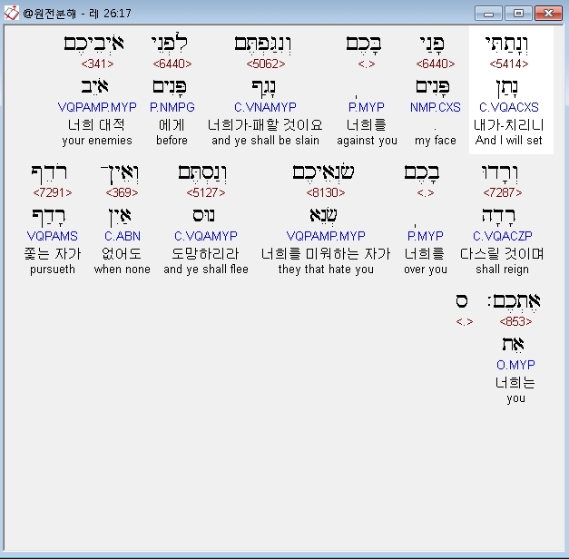 | 히브리어 레위기 24장 전체 원어 원문 성경 공부 주석 강해 설교 해설 해석 (0) | 2020.09.27 |