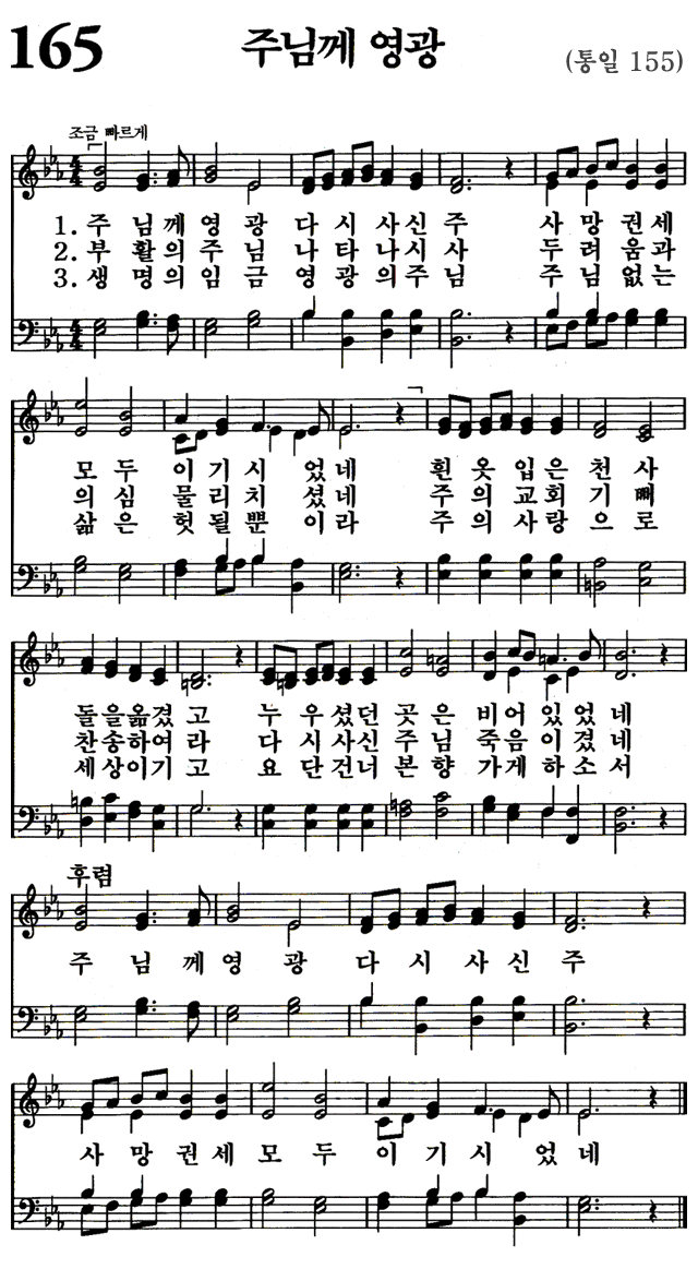 | 새찬송가 164장(통일 154장) 예수 부활했으니 - 악보 및 해설 (0) | 2021.11.30 |