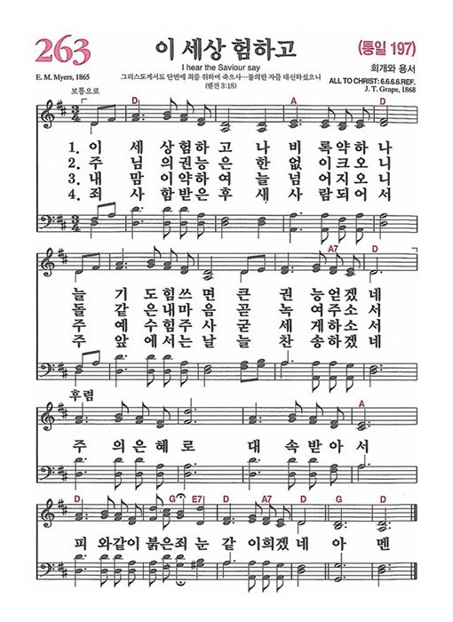 | 새찬송가 261장(통일 195장) 이 세상의 모든 죄를 - 악보 및 해설 (0) | 2021.12.05 |