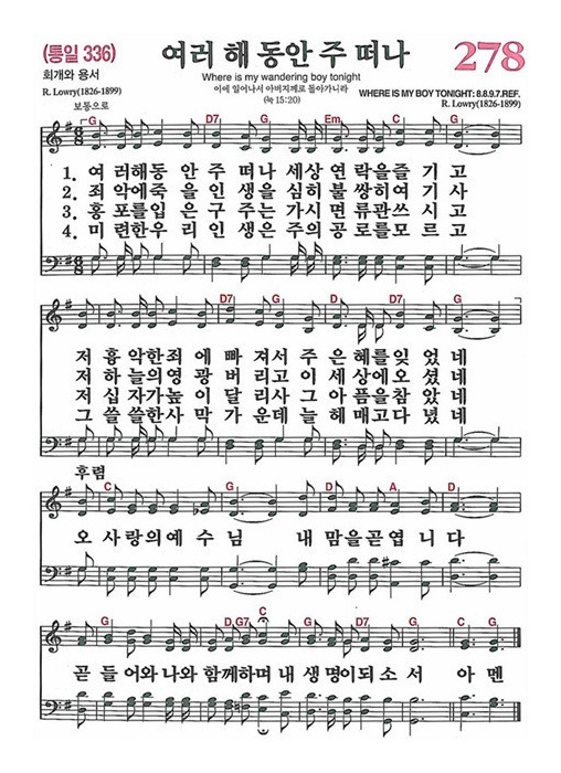 | 새찬송가 277장(통일 335장) 양때를 떠나서 - 악보 및 해설 (0) | 2021.12.06 |