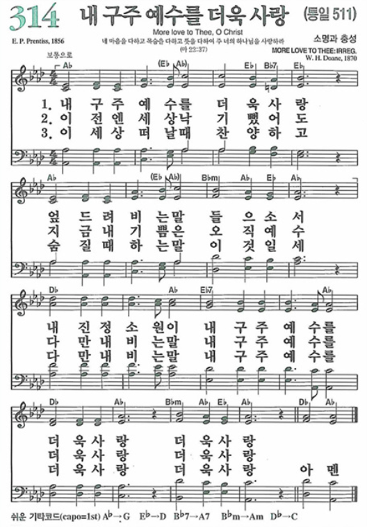 | 새찬송가 315장(통일 512장) 내 주 되신 주를 참 사랑하고 - 악보 및 해설 (0) | 2021.12.11 |