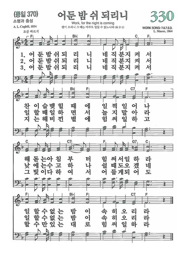| 새찬송가 332장 우리는 부지런한 - 악보 및 해설 (0) | 2021.12.11 |