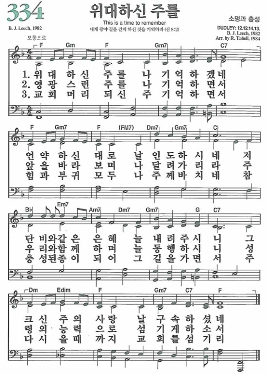 새로 채택한 이 찬송은 영국의 브라이언 리치(Bryan Jeffery Leech, 1931- ) 목사가 작사 · 작곡한 찬송「기억해야 할 시간」'This is a Time to Remember' 이란 찬송을 번역 채택한 것이다.