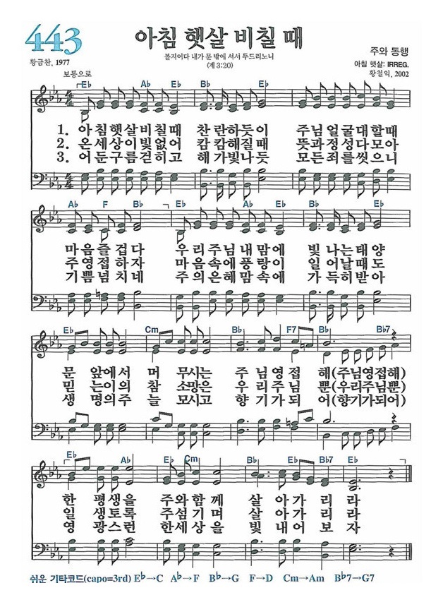 | 새찬송가 442장(통일 499장) 저 장미꽃 위에 이슬 - 악보 및 해설 (0) | 2021.12.16 |