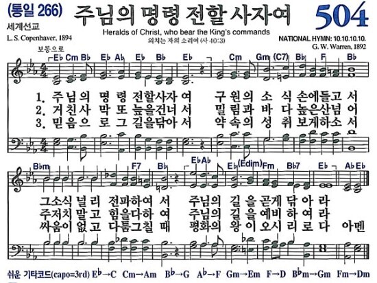 | 새찬송가 506장 땅 끝까지 복음을 - 악보 및 해설 (0) | 2021.12.18 |