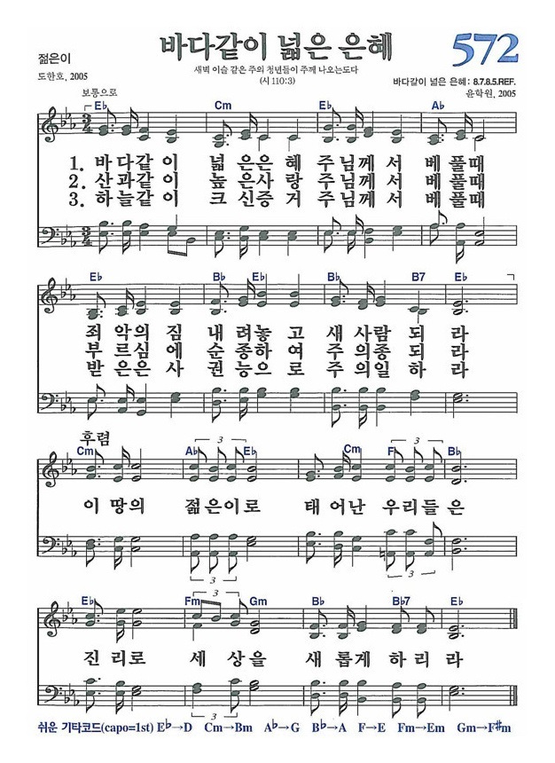 | 새찬송가 574장(통일 303장) 가슴마다 파도친다 - 악보 및 해설 (0) | 2021.12.20 |