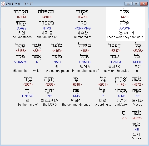 | 히브리어 민수기 1장 전체 원어 원문 성경 공부 주석 강해 설교 해설 해석 (0) | 2020.10.01 |