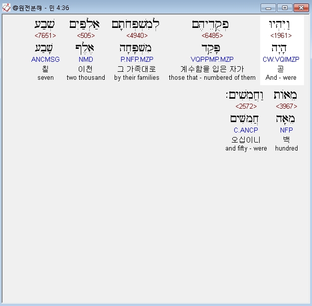 헬라어구약Septuagint,46 παντες οι επεσκεμμενοι ους επεσκεψατο μωυσης και ααρων και οι αρχοντες ισραηλ τους λευιτας κατα δημους κατ' οικους πατριων αυτων