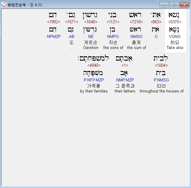 히브리어구약BHS,2 נָשֹׂא אֶת־רֹאשׁ בְּנֵי קְהָת מִתֹּוךְ בְּנֵי לֵוִי לְמִשְׁפְּחֹתָם לְבֵית אֲבֹתָם׃