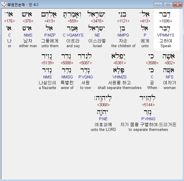 히브리어구약BHS,2 דַּבֵּר אֶל־בְּנֵי יִשְׂרָאֵל וְאָמַרְתָּ אֲלֵהֶם אִישׁ אֹו־אִשָּׁה כִּי יַפְלִא לִנְדֹּר נֶדֶר נָזִיר לְהַזִּיר לַיהוָה׃