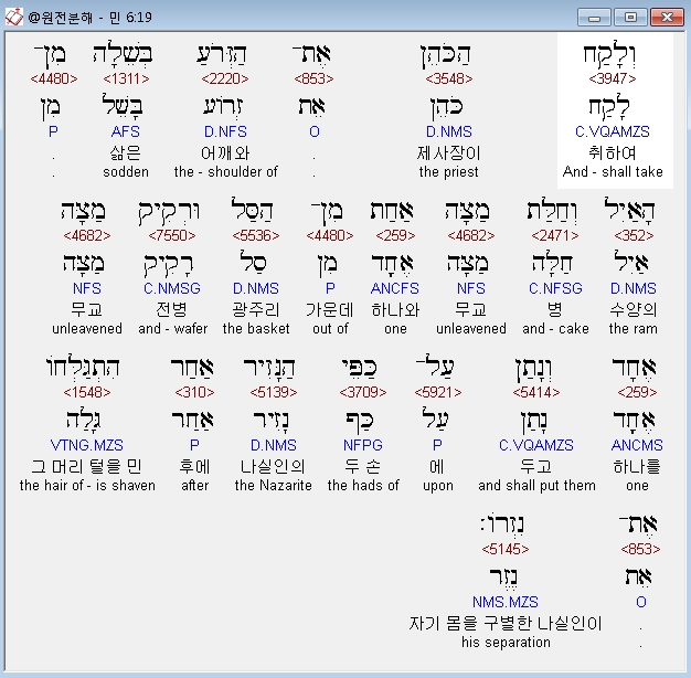 | 히브리어 민수기 7장 전체 원어 원문 성경 공부 주석 강해 설교 해설 해석 (0) | 2020.10.01 |
