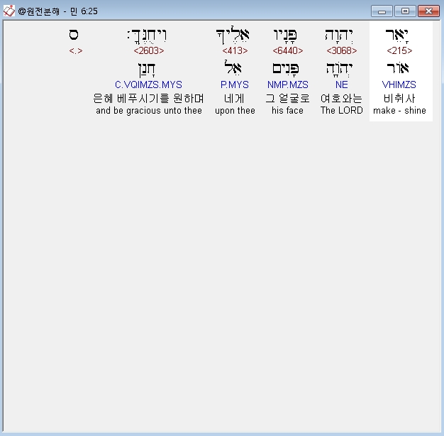 히브리어구약BHS,25 יָאֵר יְהוָה פָּנָיו אֵלֶיךָ וִיחֻנֶּךָּ׃ ס