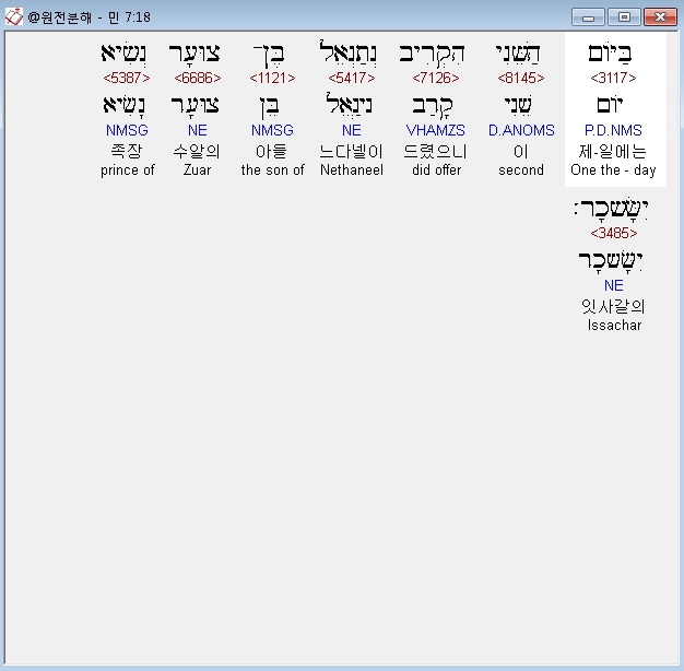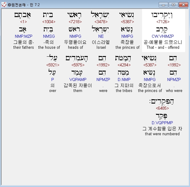 히브리어구약BHS,2 וַיַּקְרִיבוּ נְשִׂיאֵי יִשְׂרָאֵל רָאשֵׁי בֵּית אֲבֹתָם הֵם נְשִׂיאֵי הַמַּטֹּת הֵם הָעֹמְדִים עַל־הַפְּקֻדִים׃
