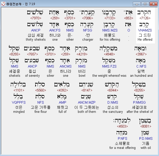 | 히브리어 민수기 8장 전체 원어 원문 성경 공부 주석 강해 설교 해설 해석 (0) | 2020.10.01 |