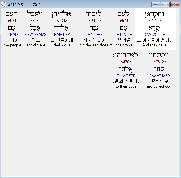 히브리어구약BHS,2 וַתִּקְרֶאןָ לָעָם לְזִבְחֵי אֱלֹהֵיהֶן וַיֹּאכַל הָעָם וַיִּשְׁתַּחֲוּוּ לֵאלֹהֵיהֶן׃
