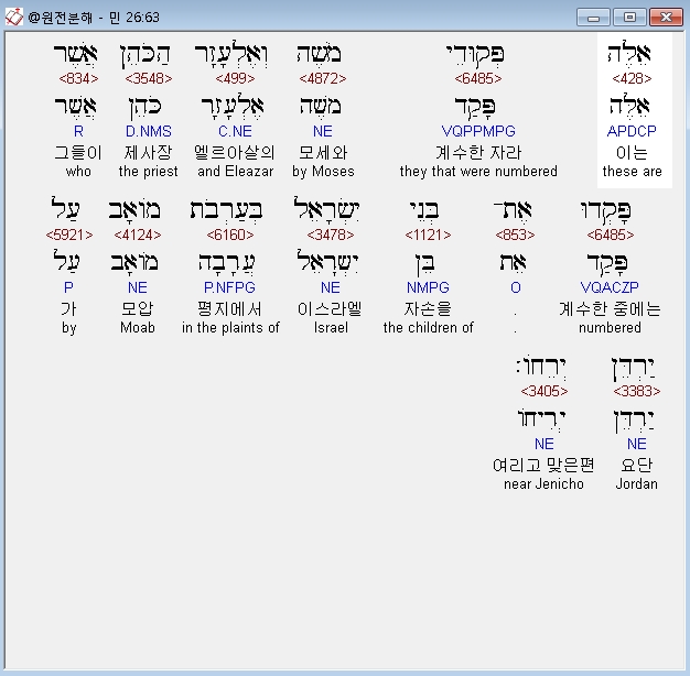 영어MSG,63 These are the ones numbered by Moses and Eleazar the priest, the People of Israel counted in the Plains of Moab at Jordan-Jericho.