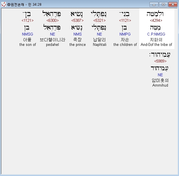 영어MSG,28 Pedahel son of Ammihud, leader from the tribe of Naphtali."