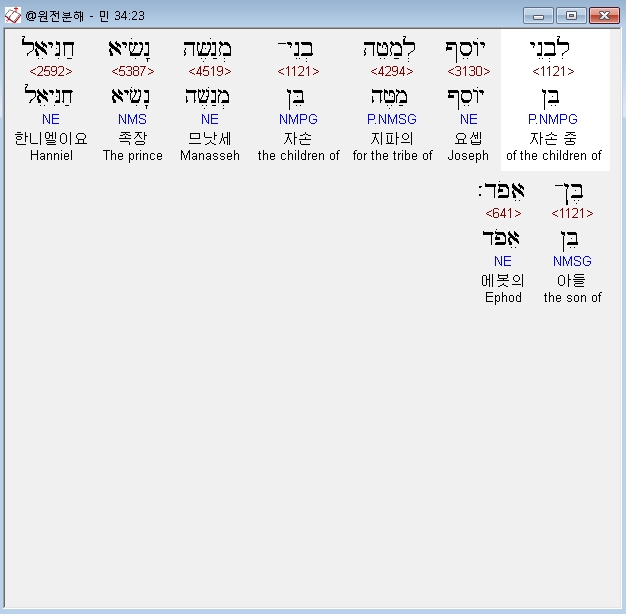 영어MSG,23 Hanniel son of Ephod, leader from the tribe of Manasseh son of Joseph;