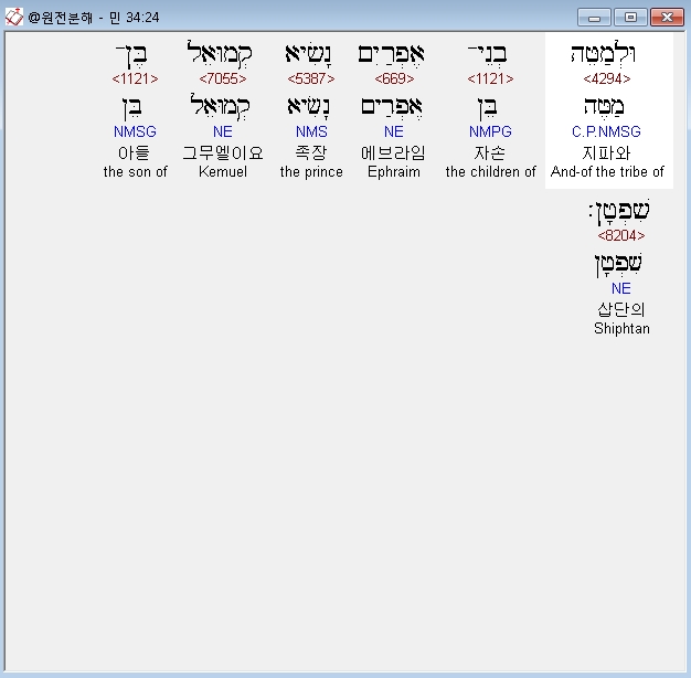 영어MSG,24 Kemuel son of Shiphtan, leader from the tribe of Ephraim son of Joseph;