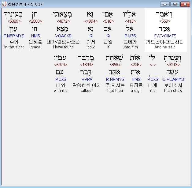 히브리어구약BHS,36 וַיֹּאמֶר גִּדְעֹון אֶל־הָאֱלֹהִים אִם־יֶשְׁךָ מֹושִׁיעַ בְּיָדִי אֶת־יִשְׂרָאֵל כַּאֲשֶׁר דִּבַּרְתָּ׃